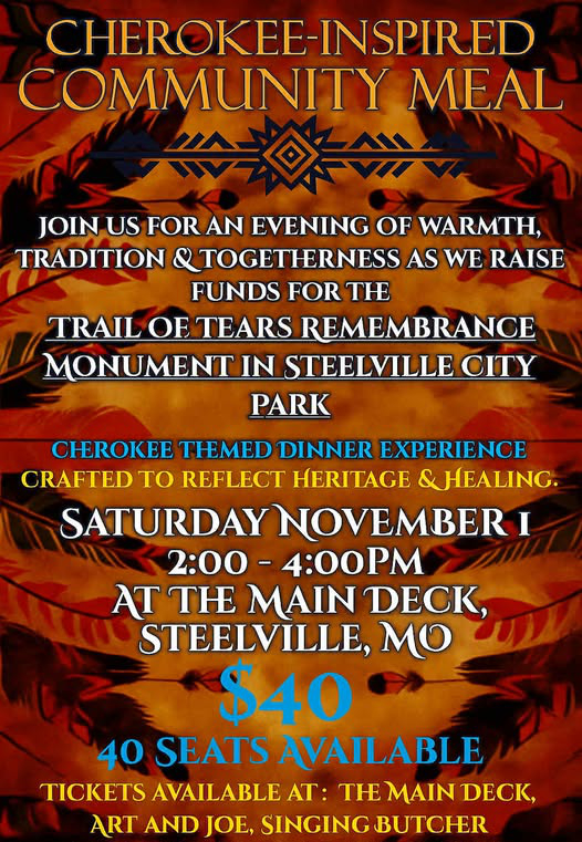 Join us for an evening of warmth, tradition and togeatherness as we raise funds for the Trail of Tears Remembrance Momument in Steelville City Park.